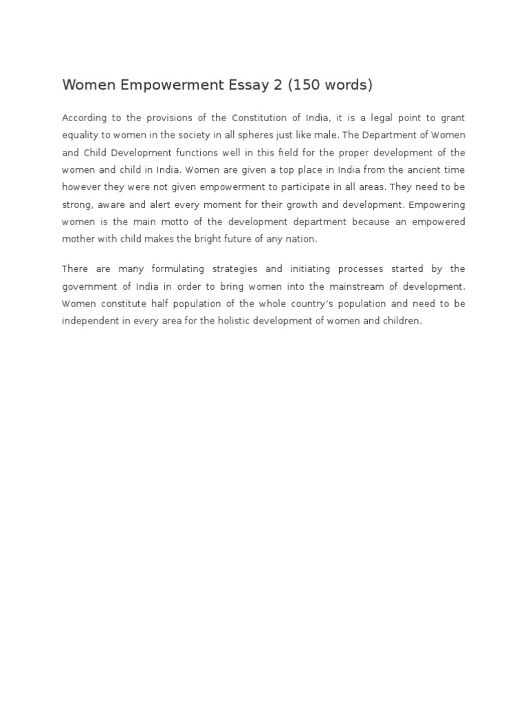 This will be also helpful for students preparing for different competitive exams. Women empowerment is all about giving women power and control over their lives. So that they can become anything they want and do whatever they want in situations where they weren't allowed to before. In simple words, it means giving women control over their lives by letting them study, work, and wear whatever they want. It will help them to overcome their weakness and boost their confidence. Their growth is important for a happy society. It is also important to the economic and social growth essay on empowerment of women the country and the world as a whole.